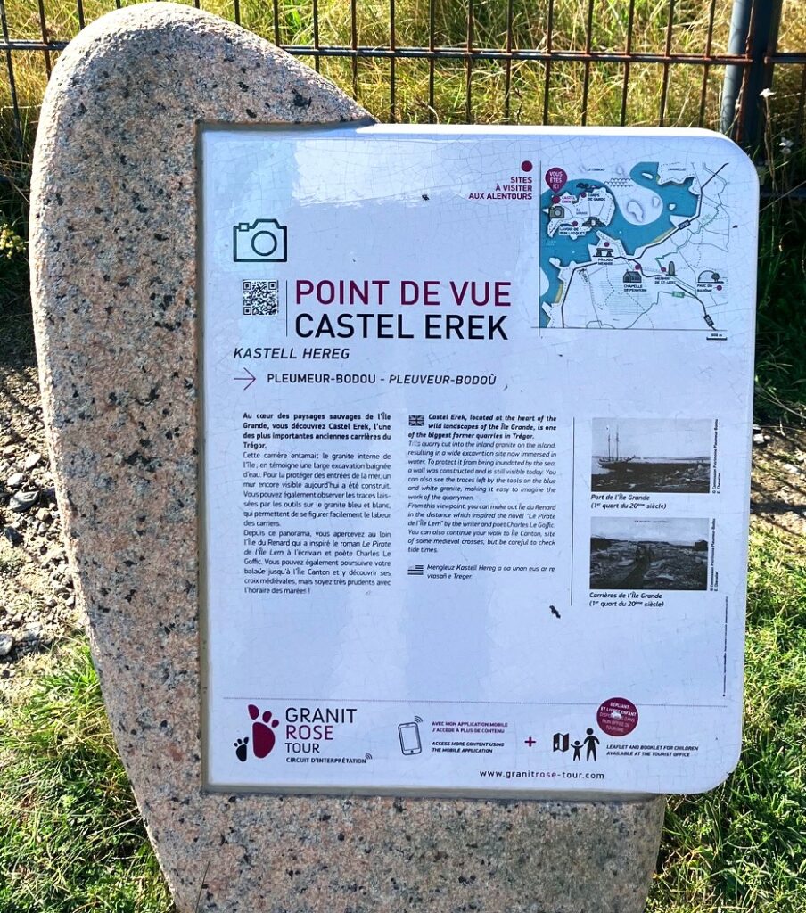 Castel Erek sur l’Ile Grande, mentionnant le roman de Charles Le Goffic l’île Renard, autrefois nommée Lern en Breton, qui a inspiré Charles Le Goffic Il s’agit certes d’un roman, mais dont l’histoire a sûrement été inspirée à Charles Le Goffic par les légendes de marins miraculeusement sauvés et venus remercier Notre-Dame de Bon-Secours. Elle rappelle aussi la dévotion dont les marins et leurs familles faisaient preuve envers elle, ce dont témoignaient les nombreux ex-voto présents autrefois dans la chapelle de Penvern.