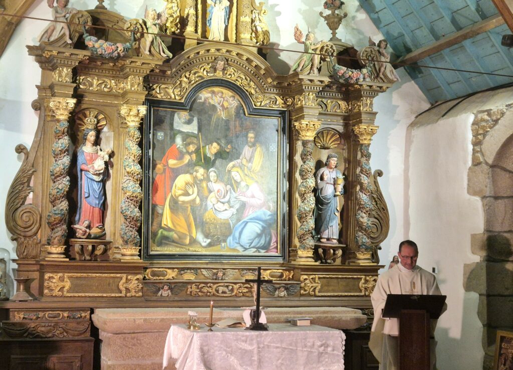 L’autel était traditionnement installé aux croisementx des veines d’eau car ils étaient des lieux d’énergie forts (voir l’homélie). L’autel de la chapelle étant ainsi construit confirme que le lieu est très ancien.