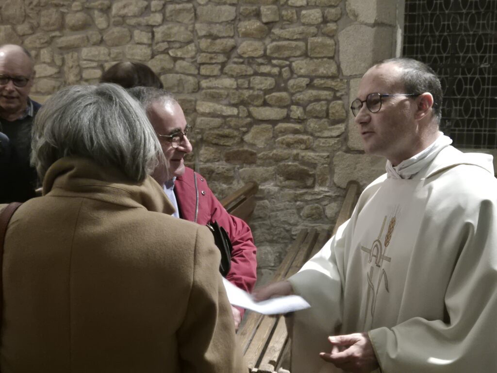 Après la messe le Père Palcoux a très aimabement accordé quelques minutes afin d’échanger avec les paroissiens et l’association.